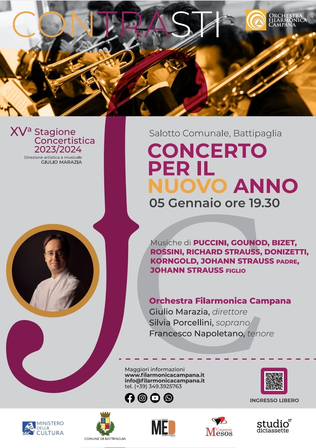 5 gennaio, ore 19.30, Salotto comunale, Battipaglia: CONTRASTI; Concerto per il nuovo anno dell’Orchestra Filarmonica Campana.