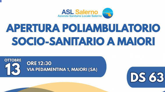 MAIORI / SALERNO – Lunedì 13 ottobre 2025, alle ore 12,30, nei locali di Via Pedamentina n. 1, aprirà i battenti il nuovo Polo Socio-Sanitario di Maiori, afferente al Distretto Sanitario n. 63 di Cava-Costa d’Amalfi.