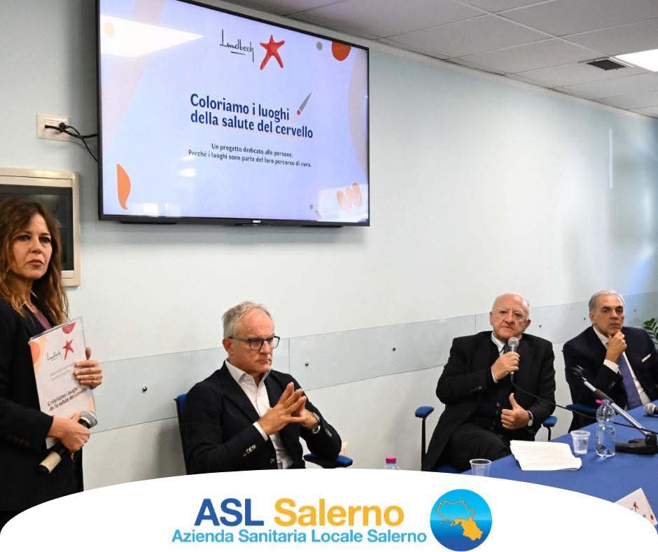 Inaugurato con la presenza del Governatore Vincenzo De Luca il progetto “Coloriamo i luoghi della salute del cervello” in collaborazione con Lundbeck Italia, presso il Dipartimento di Salute Mentale dell’ASL Salerno in Via Martin Luther King Loc. Mariconda di Salerno.