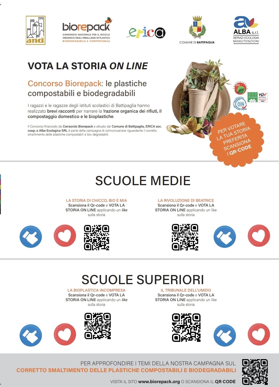BATTIPAGLIA – Il Comune di Battipaglia, in collaborazione con Erica Soc. Coop. che ha redatto il progetto finanziato dal Consorzio di Filiera Biorepack, invita studenti, docenti e cittadini a partecipare attivamente alla fase finale del bando Biorepack – “Comunicare la bioplastica compostabile”, un’iniziativa che promuove la sensibilizzazione ambientale e la corretta gestione degli imballaggi in bioplastica biodegradabile e compostabile.