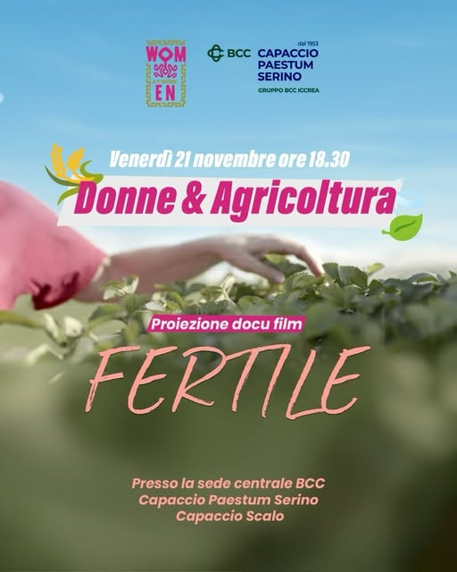 Alla BCC di Paestum l’incontro “Donne & Agricoltura”, sede centrale della BCC, in via Magna Graecia, Capaccio Scalo (Salerno), si terrà in apertura la proiezione del docufilm “Fertile”, tra marginalità e pari opportunità.