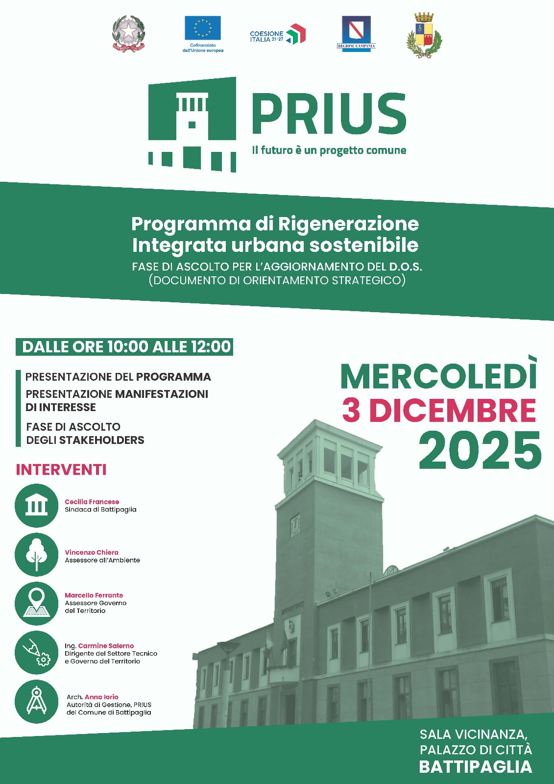 L’iniziativa rientra nel percorso di ascolto e partecipazione promosso dal Comune di Battipaglia nell’ambito della programmazione PR Campania FESR 2021-2027, con l’obiettivo di costruire una strategia condivisa per la rigenerazione degli edifici e degli spazi pubblici, in linea con i principi di sostenibilità, innovazione ed inclusione sociale.