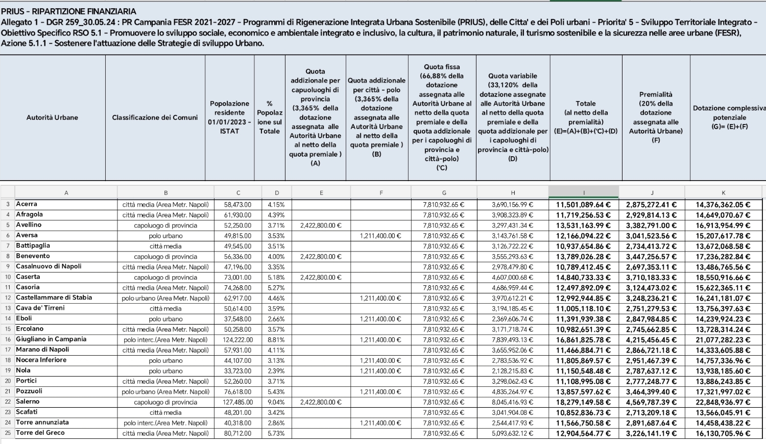 REGIONE CAMPANIA RIPARTIZIONE FONDI PRIUS CITTÀ OLTRE I 30MILA ABITANTI