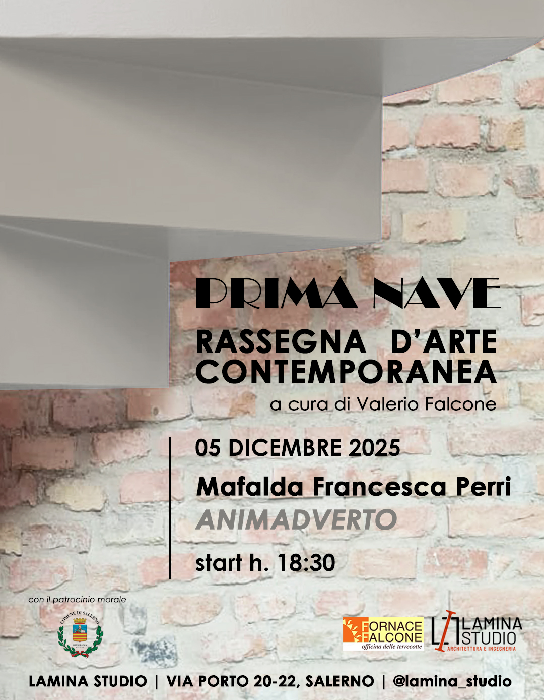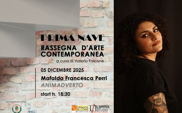 5 dicembre 2025, ore 18:30, Sede Lamina Studio, Via Porto 20-22, Salerno, nell’ambito della Rassegna “Prima nave” Mafalda Francesca Perri presenta Animadverto il progetto espositivo, ideata dallo studio Lamina a cura di Valerio Falcone.