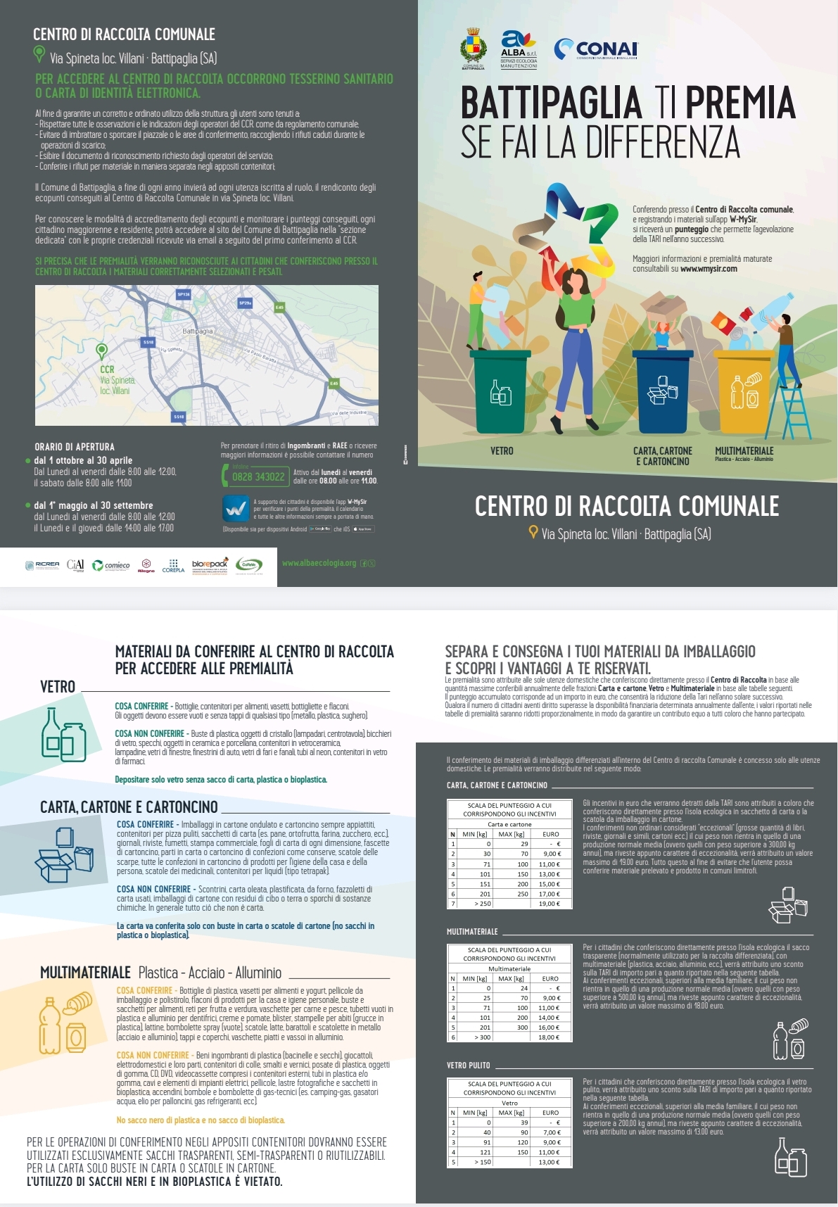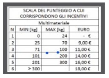 Il conferimento dei materiali di imballaggio differenziati all’interno del Centro di raccolta Comunale è concesso solo alle utenze domestiche. Le premialità verranno distribuite nel seguente modo: