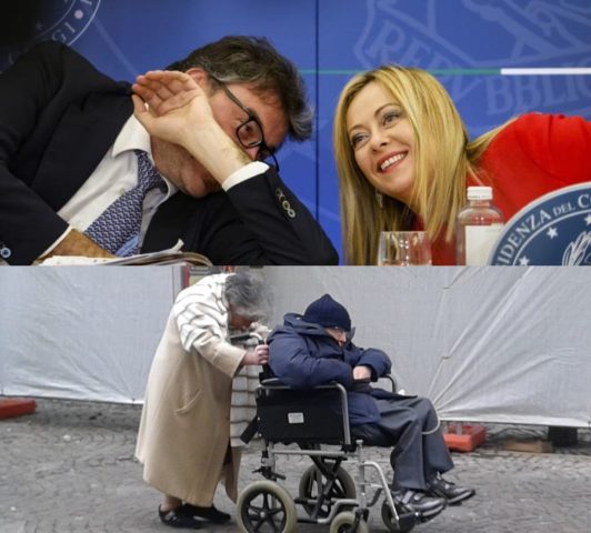 Grazie per come state trattando gli italiani, grazie per averci fatti più poveri, grazie per tutto quello che non fate per noi, grazie perché ci avete spinti a rifiutare le cure mediche, grazie per tutti i servizi che ci sono negati, grazie per il grande aumento delle pensioni, grazie a tutti i “fratelli d’Italia“, grazie di cuore dai “Fratellastri d’Italia“. Intanto noi ci daremo ai bagordi.