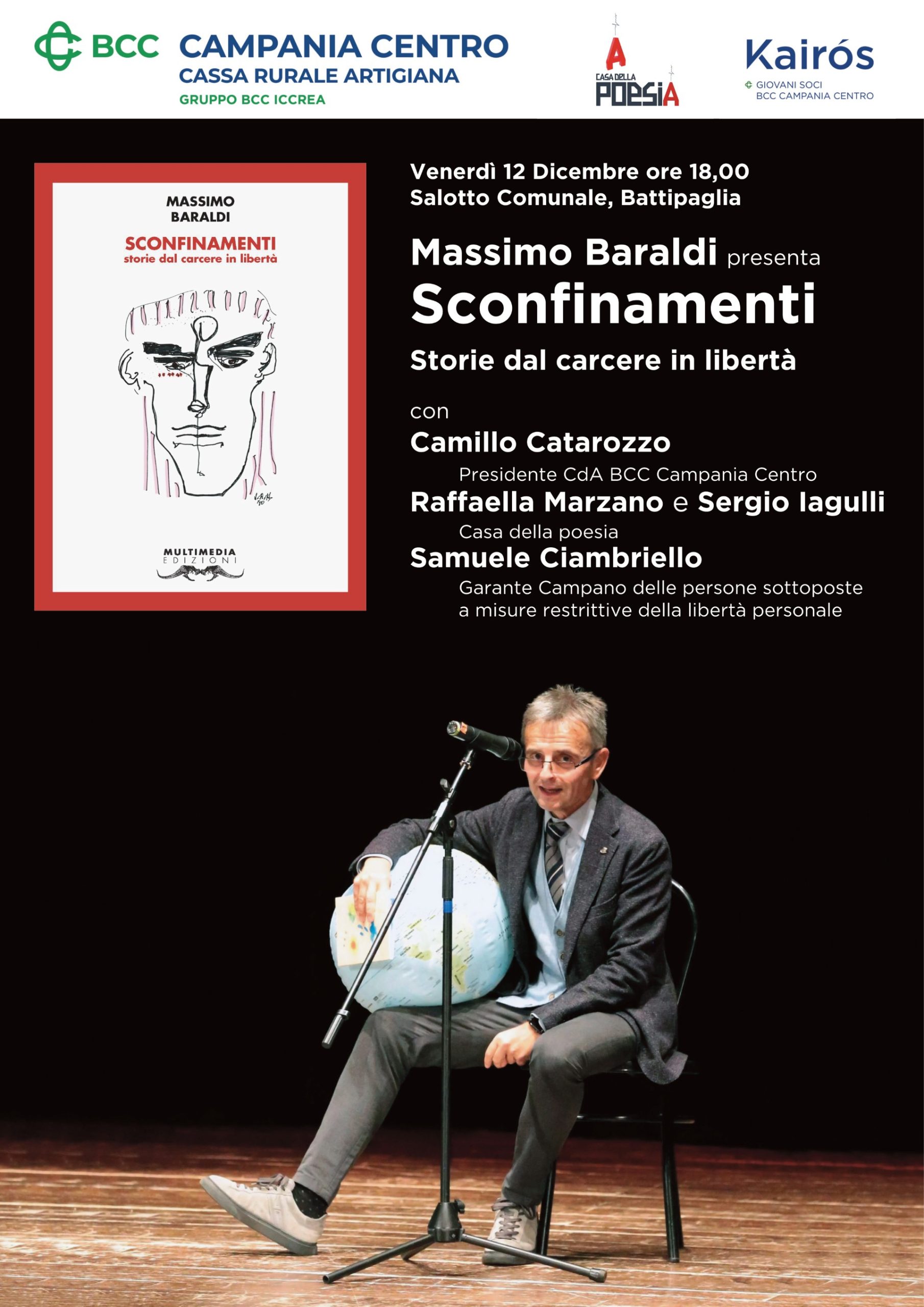 Venerdì 12 dicembre, a Eboli, ore 10.00, Casa di Reclusione, a Battipaglia, ore 18.00, Salotto Comunale, doppia presentazione del Libro “Sconfinamenti” Storie dal Carcere in libertà, il libro di Massimo Baraldi – Multimedia Edizioni. “Un progetto di La Casa della Poesia e Club Kairòs Giovani Soci Bcc Campania Centro realizzato con il contributo di Banca Campania Centro”.