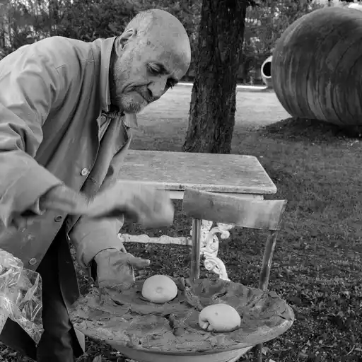 FERDINANDO VASSALLO nasce a Montecorvino Rovella (SA) dove tuttora vive e lavora. Alla fine degli anni sessanta, dopo aver frequentato la sezione Ceramica dell’Istituto Statale d’Arte di Salerno, inizia la sua attività di ceramista. Nel ’78 è tra i fondatori del Laboratorio TERRAVIVA insieme a Raffaele Falcone. Attualmente Vassallo prosegue la sua attività autonomamente. E’ del 1986 la sua prima performance artistica con la creazione del MIO PRIMO VASO ASSENTE; seguono FREE FIRE, CARTON FIRE e CRAVON FIRE tra l’87 e il ’95 con la cottura estemporanea, o aerea di vasi in presenza di forte ossidazione, in occasione di eventi pubblici e in spazi museali (Museo Nazionale di Belgrado, 2003). Con il progetto 12 URNE CINERARIE PER IL PROSSIMO MILLENNIO (1995) inaugura il genere “ironico”: urne cinerarie realizzate in fogge e con metodologie preistoriche contengono al posto delle ceneri umane oggetti che l’uomo avrebbe evitato di portare nel ventunesimo secolo. Tra le sue recenti esposizioni in spazi pubblici ricordiamo nel 2004 nei GIARDINI DELLA MINERVA a Salerno; il MUSEO DELLA CERAMICA DELLA TUSCIA DI VITERBO e CASIMIRO MARCANTONI di Civita Castellana (entrambe del 2008); la mostra SEMI (2009) e PIETRE GALLEGGIANTI del 2010 nel parco urbano Ex Salid sul Lungo Irno a Salerno.
