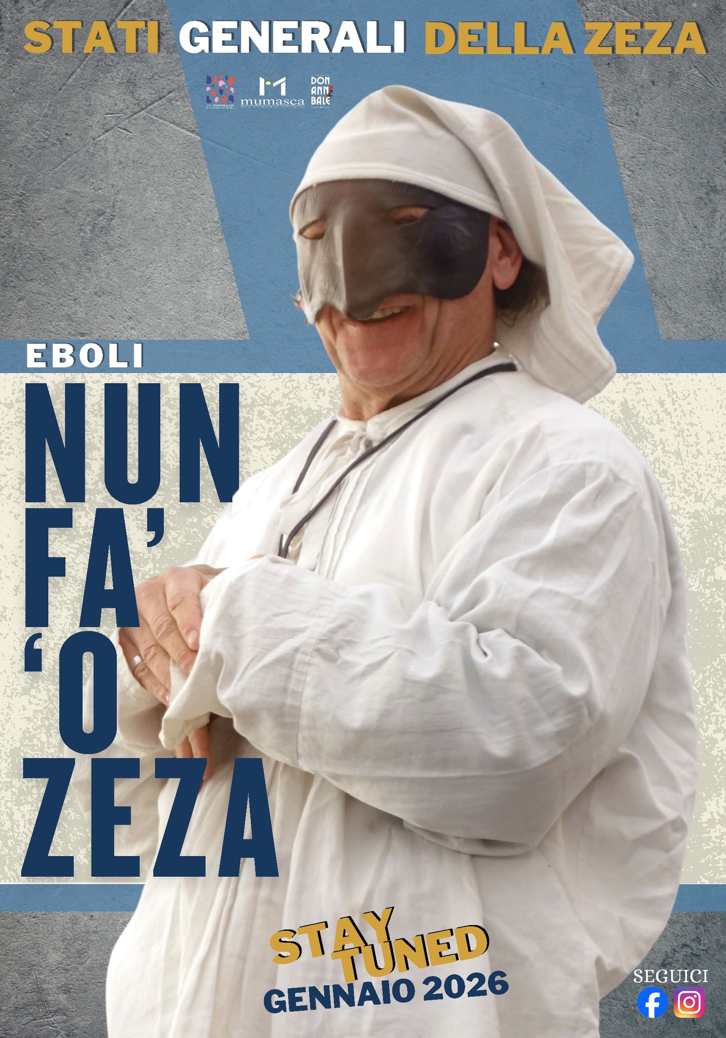 L’edizione 2026 degli Stati Generali della Zeza, che dopo Eboli toccherà altre città campane, è organizzata dal MuMasca – Carnevale delle Maschere di Montoro e dall’ associazione Don Annibale – farsa carnevalesca ebolitana. A patrocinare l’iniziativa, oltre alla Provincia di Salerno e al Comune di Eboli, la Città di Pastrana (Spagna), l’Unpli Regione Campania, Simbdea – Società italiana per la museografia e i beni demoetnoantropologici, il Museo di Pulcinella di Acerra, il Coordinamento Nazionale Maschere Italiane e l’associazione Carnevali nel Mondo.