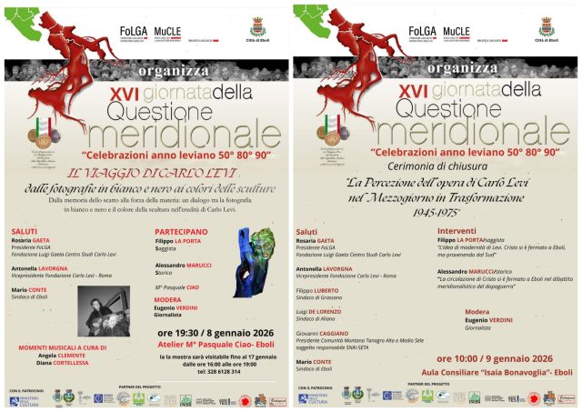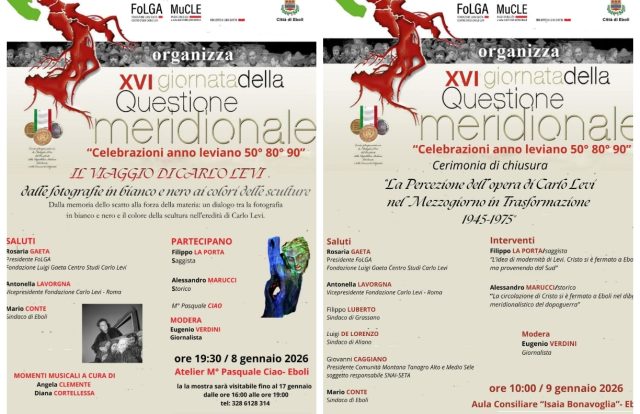 Al via la chiusura dell’Anno Leviano con la XVI Giornata della Questione Meridionale. L’evento ebolitani celebra Carlo Levi, si svolge due giornate l’8 e il 9 gennaio 2026, segna il culmine di un percorso di riflessione profonda sull’eredità artistica, politica e sociale di Carlo Levi.