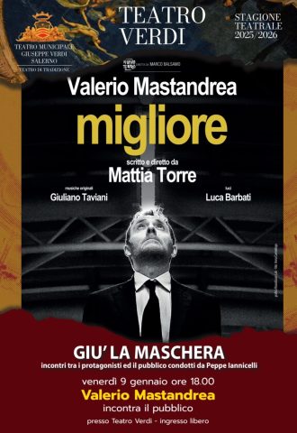 Venerdì 9 gennaio, alle ore 18.00, al Teatro Municipale Giuseppe Verdi di Salerno, l’attore Valerio Mastandrea incontra il pubblico in “Giù la Maschera”. Conduce Peppe Iannicelli.