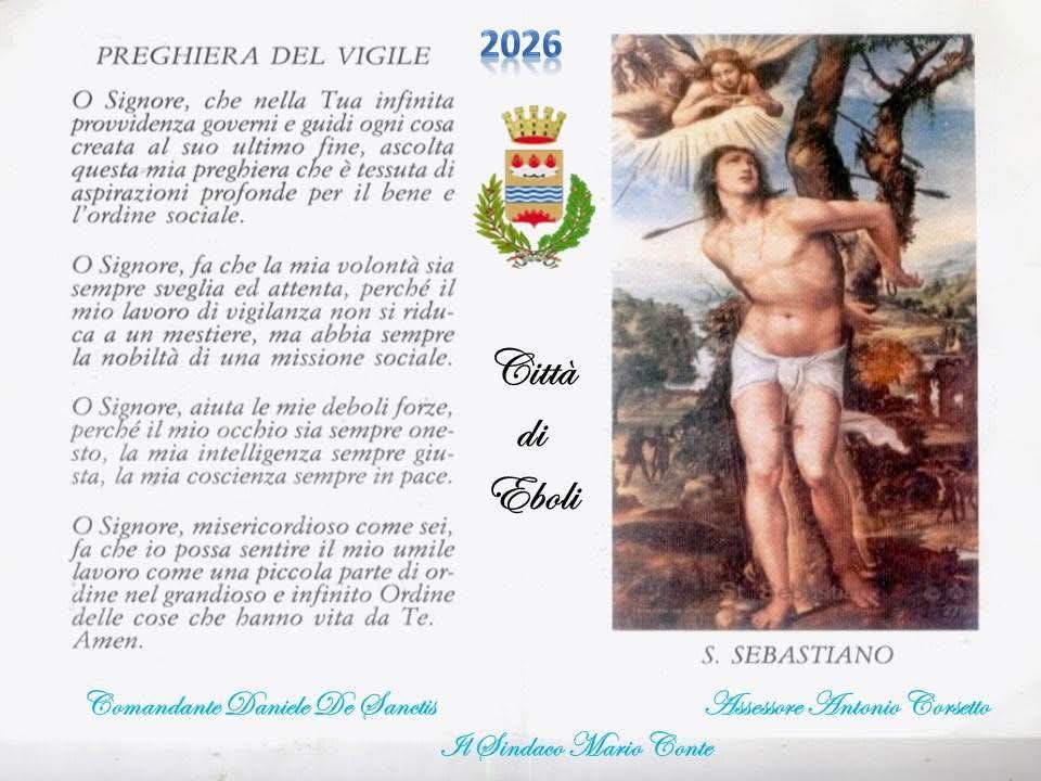 Oggi 20 gennaio è San Sebastiano il Santo Patrono della Polizia Municipale. Messaggi augurale agli Agenti dall’assessore Corsetto, dal Comandante De Santis e dal Sindaco di Eboli Mario Conte.