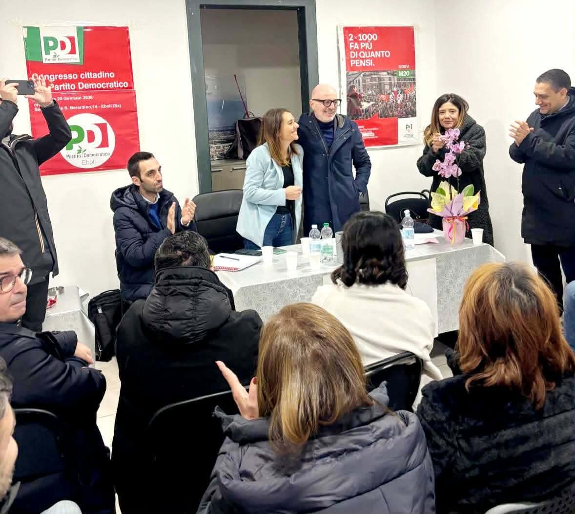 Si è tenuto nella mattinata di ieri il Congresso cittadino del Partito Democratico di Eboli. L’assemblea ha riconfermato alla Segreteria Simona Naimoli. Giovanni Coscia candidato Segretario provinciale, è stato votato per acclamazione dei presenti. Il “responsabile” Capaccio ha fatto ricorso ma è rimasto sull’uscio. I Conte fuori.
