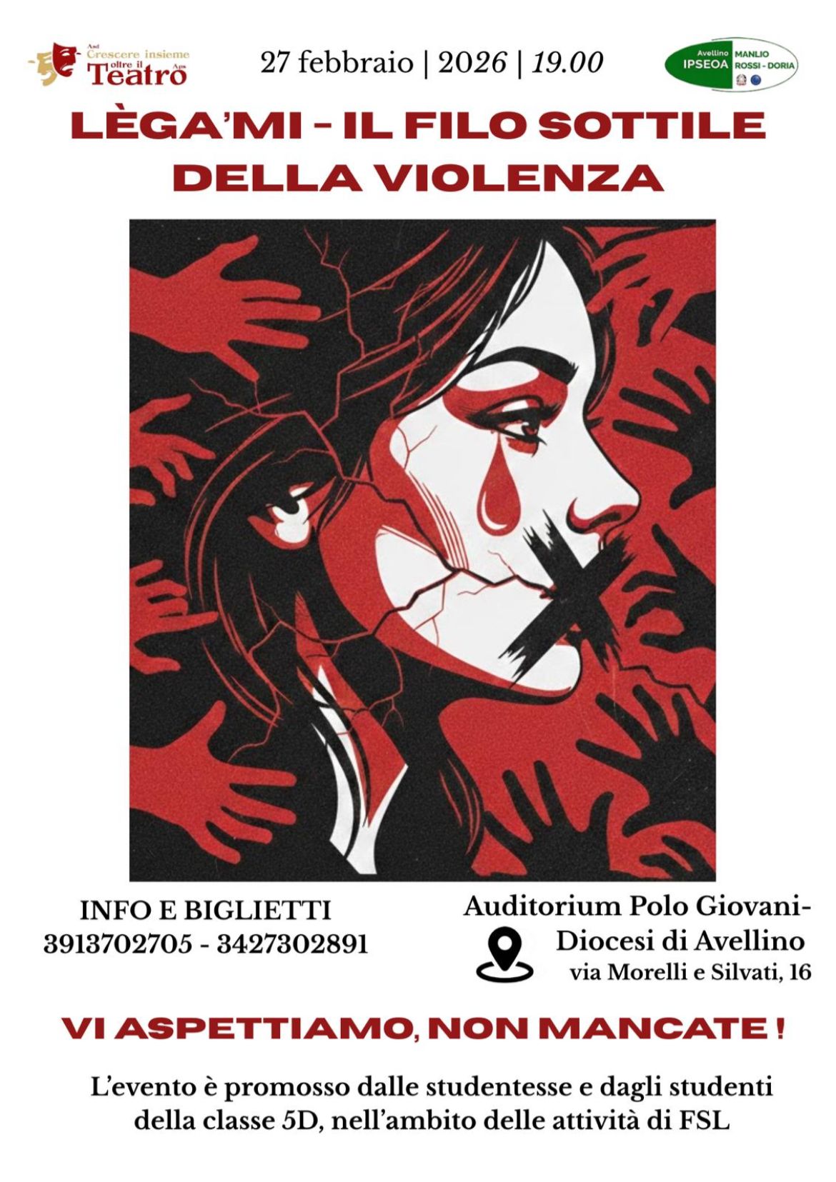27 febbraio alle ore 19:00, presso il Polo Giovani – Diocesi di Avellino, spettacolo teatrale “LègÁmi – Il filo sottile dell’amore violento”: E… il teatro diventa educazione sentimentale.