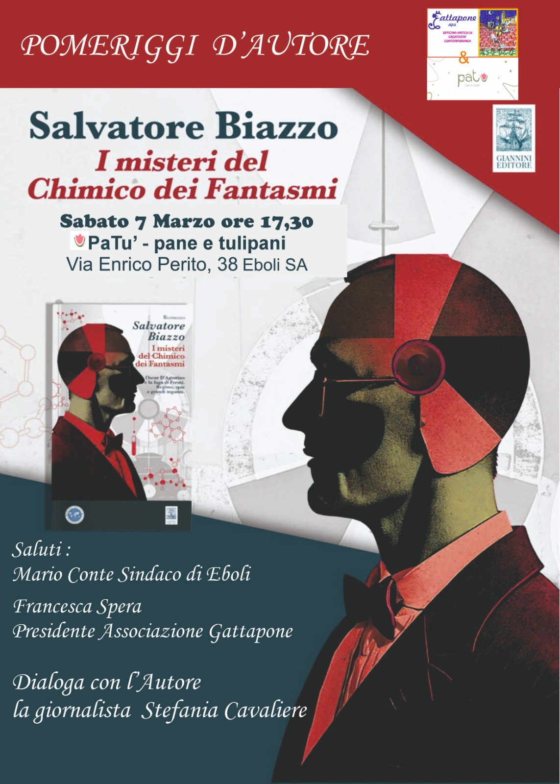 Sabato 7 marzo, ore 17.30, presso “Pane e Tulipani” Via Perito Eboli, presentazione del Libro di Salvatore Biazzo “Il Mistero del chimico dei Fantasmi”. il Chimico che cambiò il Mondo: La storia mai raccontata di Oscar D’Agostino, l’unico chimico dei Ragazzi di Via Panisperna, tra regime, spie e neutroni.