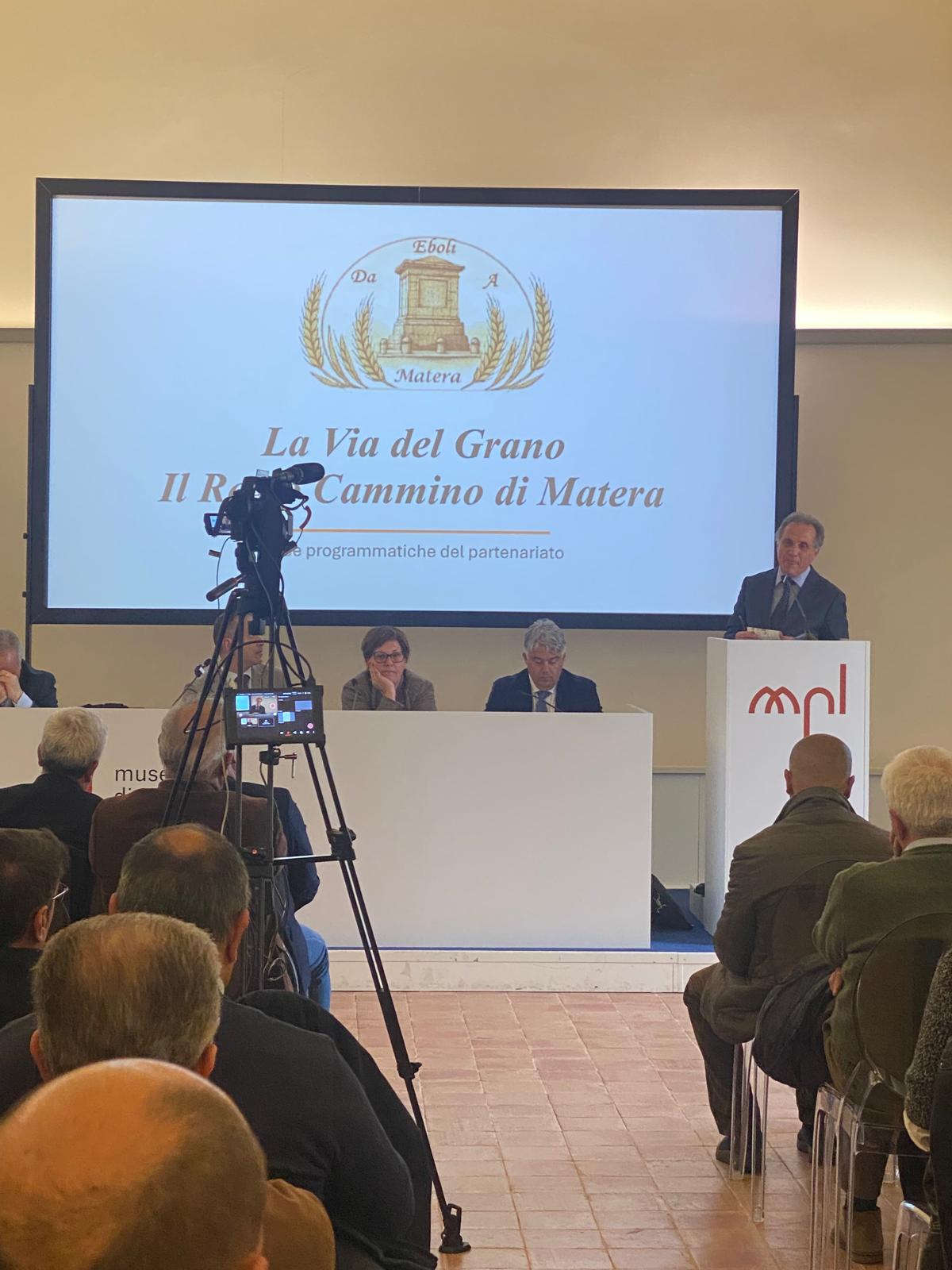 MATERA / EBOLI – Nella suggestiva sala conferenze del Museo di Palazzo Lanfranchi a Matera sono state presentate le linee programmatiche del partenariato de “La Via del Grano – Il Regio Cammino di Matera”. L’occasione è stata il convegno promosso dal Comune di Eboli, capofila del progetto, con il Comune di Matera e l’Associazione “La Via del Grano” e il patrocinio della Direzione Regionale Musei Nazionali della Basilicata del Ministero della Cultura.