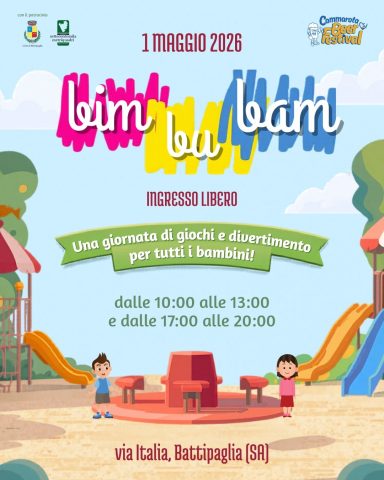 “Bim Bu Bam” arriva a Battipaglia: il 1° maggio una giornata gratuita dedicata ai bambini all’insegna del gioco, della creatività e del divertimento.