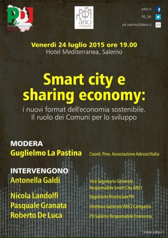 SALERNO – Si è tenuto nella serata di oggi 24 luglio 2015, presso la sala delle conferenze del Mediterranea Hotel di Salerno un Convegno dal tem: «Smart city e sharing economi: I nuovi format dell’economia sostenibile. Il ruolo dei comuni per lo sviluppo».