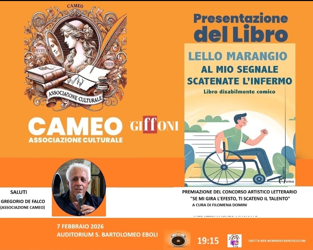 7 febbraio 2026, ore 19.15, Auditorium San Bartolomeo, Eboli, Presentazione del libro di Lello Marangio “Al mio segnale scatenate l’infermo. ...