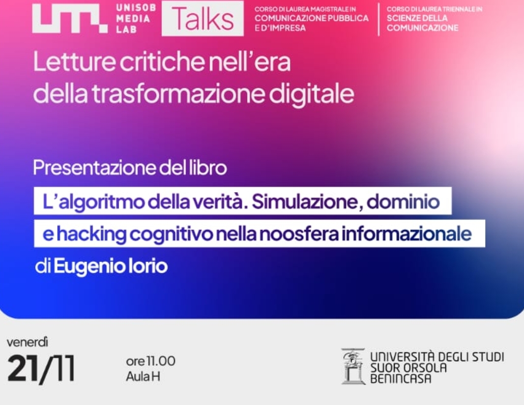 Unisob Napoli. Presentazione del Libro “L’algoritmo della realtà….” di Eugenio Iorio